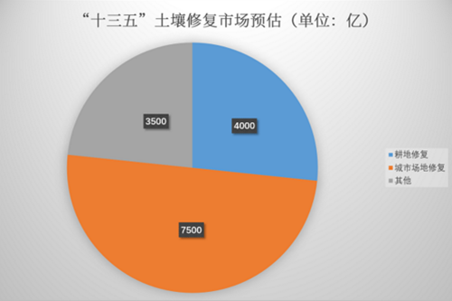 構(gòu)樂觀估計,“十三五”期間,我國土壤修整市場的空間可以突破1.5萬億元,其中又以耕地與城市場地修整為,前者有近4000億的潛在空間,后者則達到7500億之多。