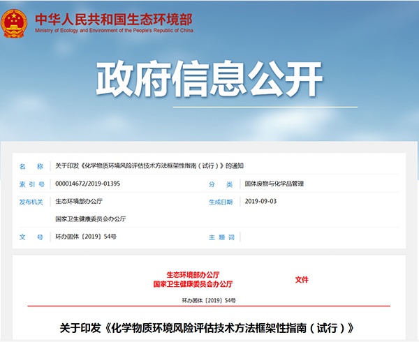 2019年9月3日,生態(tài)環(huán)境部、衛(wèi)生健康委印發(fā)了《化學(xué)物質(zhì)環(huán)境風(fēng)險評估技術(shù)方法框架性指南(試行)》,詳情如下: