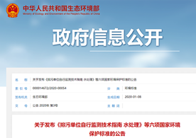 生態(tài)環(huán)境部發(fā)布了《排污單位自行監(jiān)測技術(shù)指南 水處理》等六項國家環(huán)境保護標準的公告