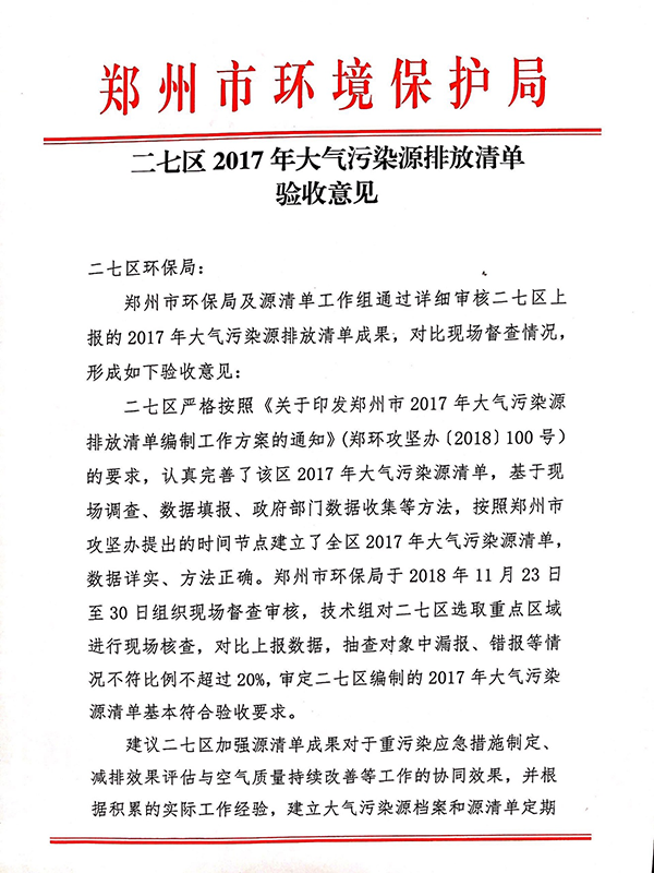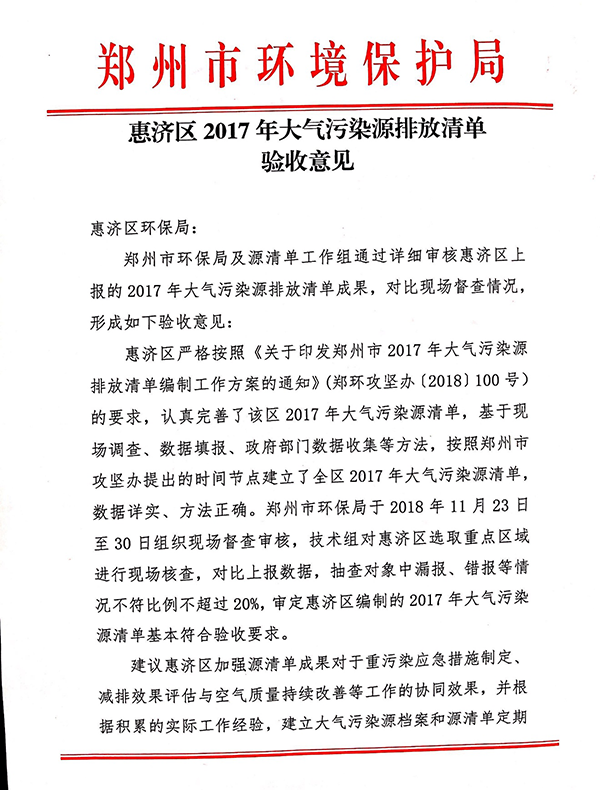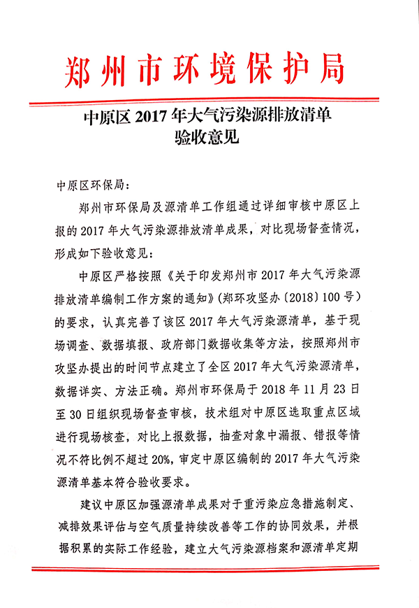 我司承接的“中原區(qū)、二七區(qū)、惠濟(jì)區(qū)2017年大氣污染源排放清單”順利通過驗(yàn)收